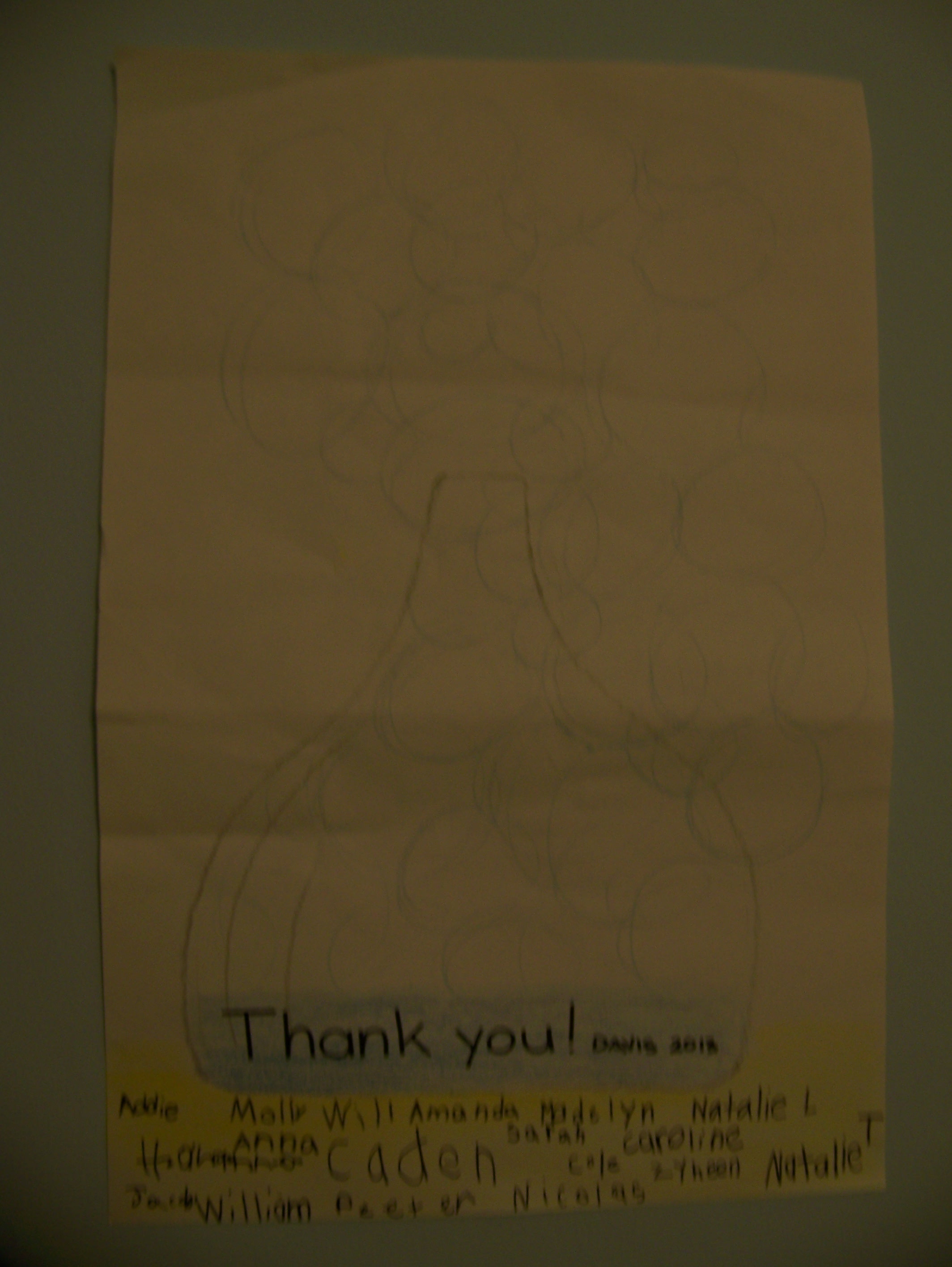 I did my “What a GAS!” presentation for Ms. Davis kindergarten class at Coralwood School a few weeks ago, and they sent me this adorable card. They were studying solids, liquids,and gasses, so we did some experiments from Science Experiments that Fizz and Bubble and explored the world of gasses. I also shared with them what it’s like being a non-fiction author, since they have been having author teas (for their classroom authors) this month.