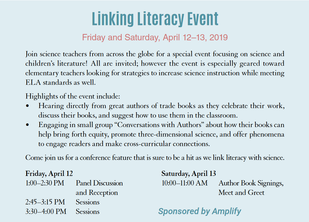 The National Science Teachers Association (NSTA) will have its annual conference in St. Louis, MO from April 11 to 14. Of course, the national conference is always a fantastic experience. This year, a whole slew of children’s science writers are going to converge on the conference and have a special series of sessions and events on integrating great books with science teaching. It also means that, for the first time, a lot of the authors of “NSTA’s Outstanding Science Trade Books” will be in the sessions about those books to meet you and answer your questions!
